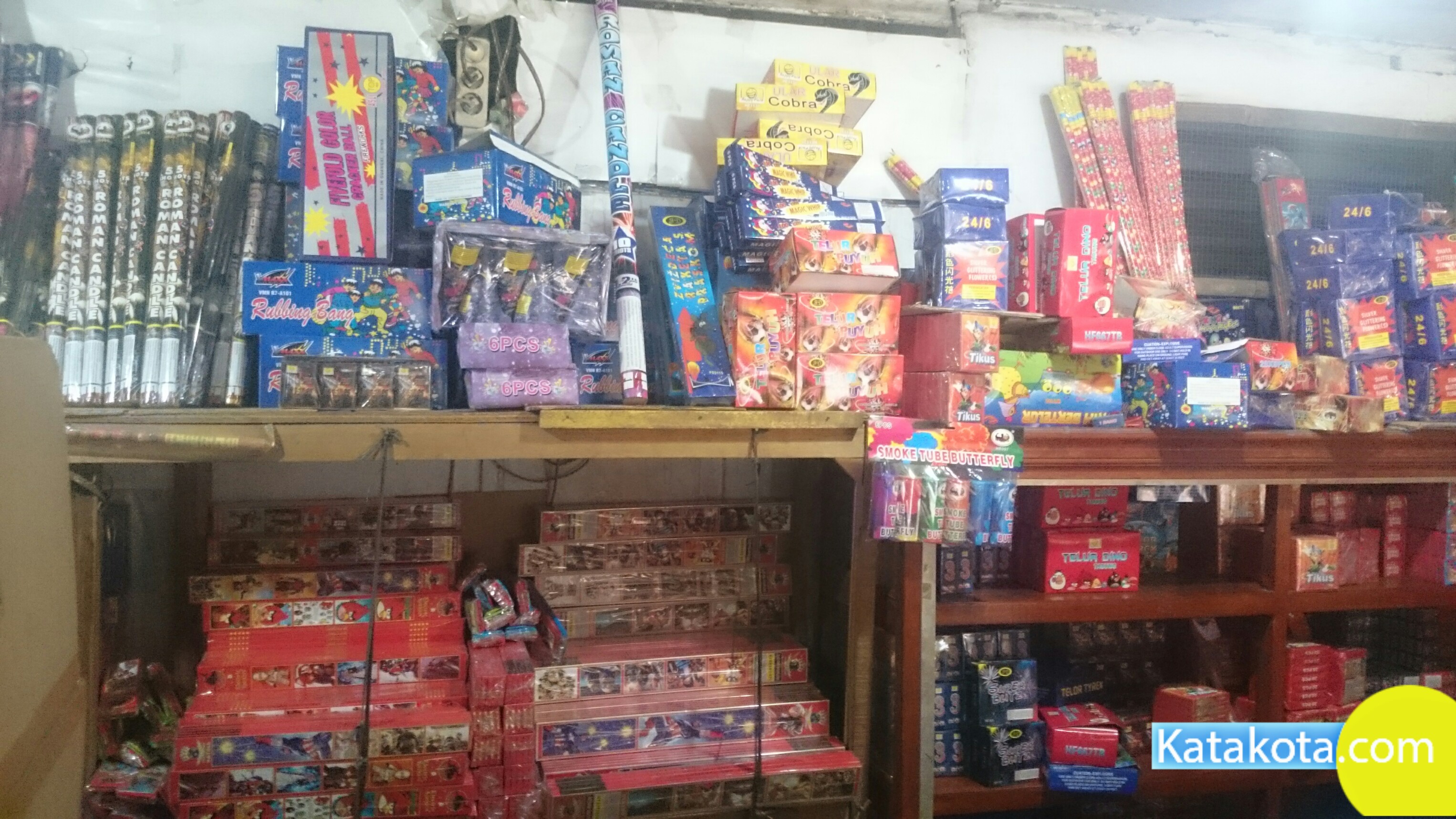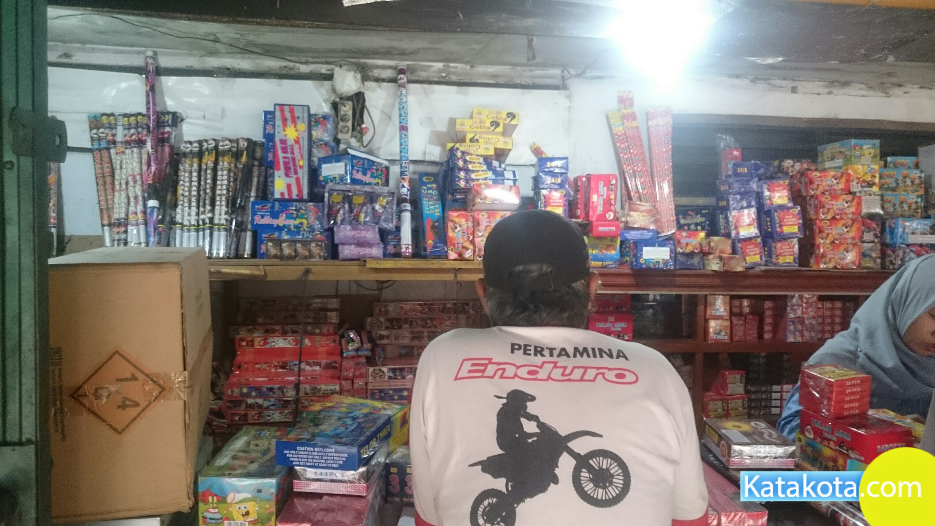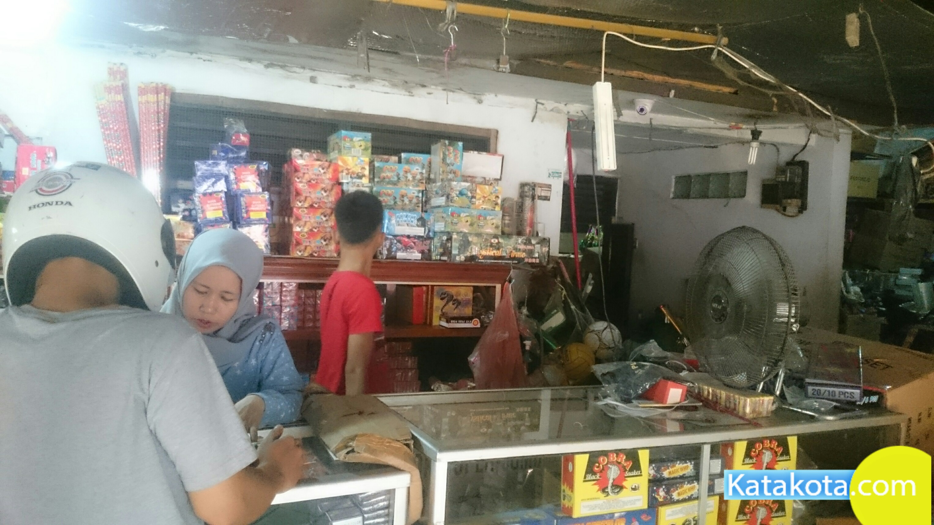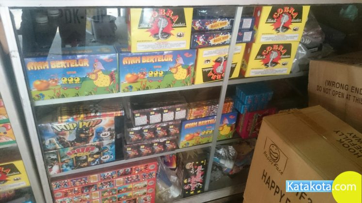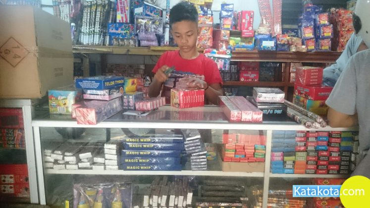 Tangerang, Katakota.com -Pedagang kembang api laris manis, banyak warga yang membeli jelang perayaan Idul Fitri 1439H, Pasar Anyar, Tangerang, Rabu (13/6). Dalam sehari pedagang meraup untung ratusan ribu pada momen ini. (Foto : Cecep/Katakota.com)