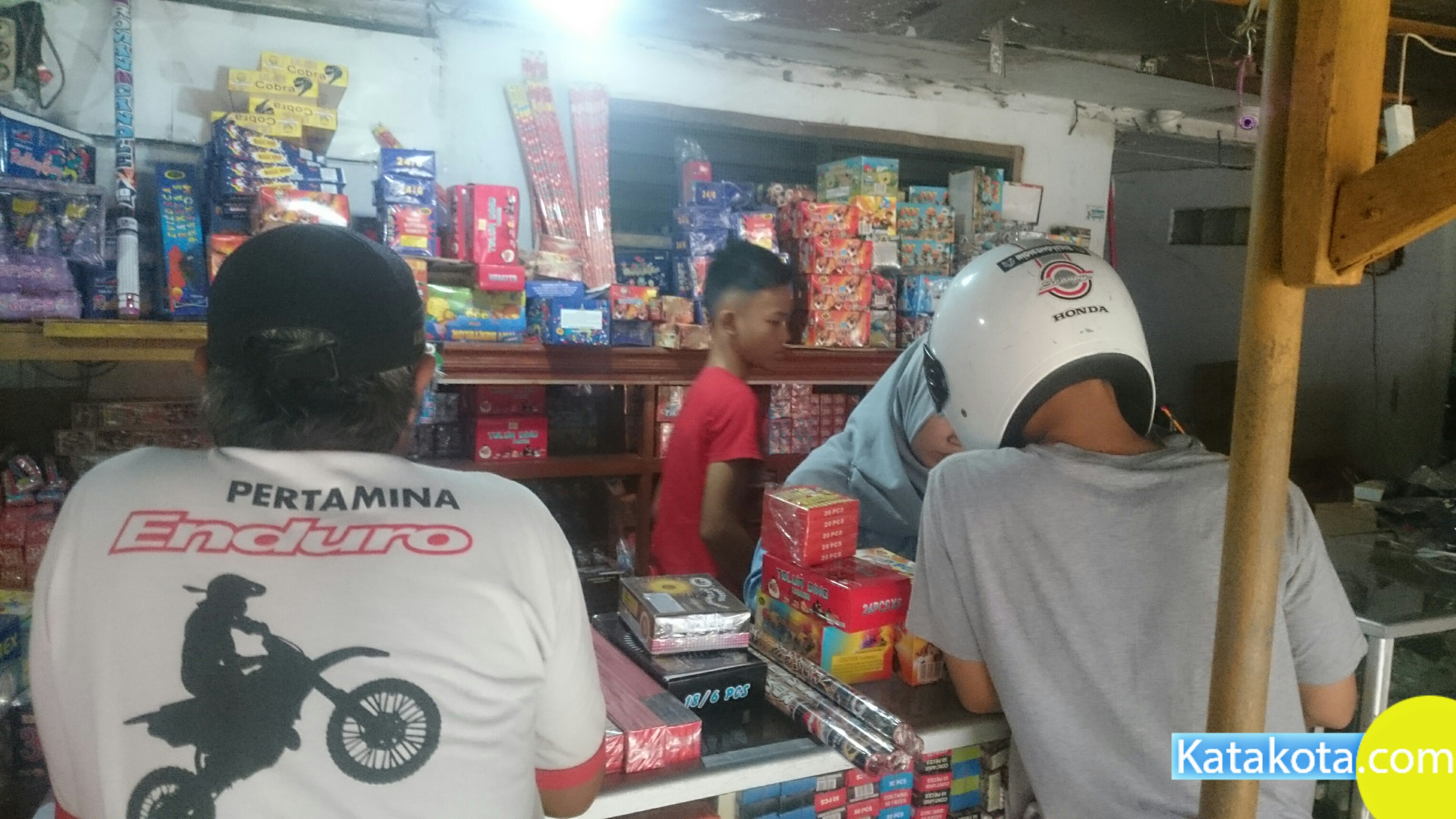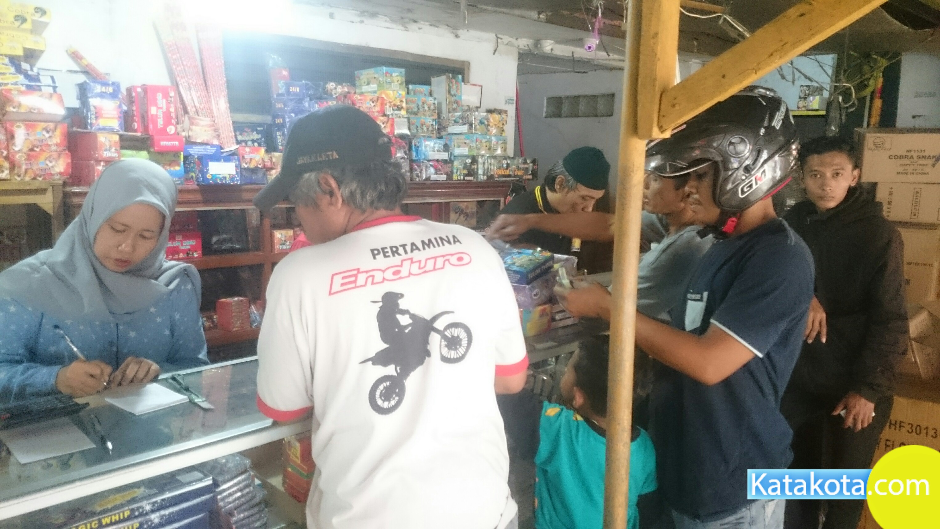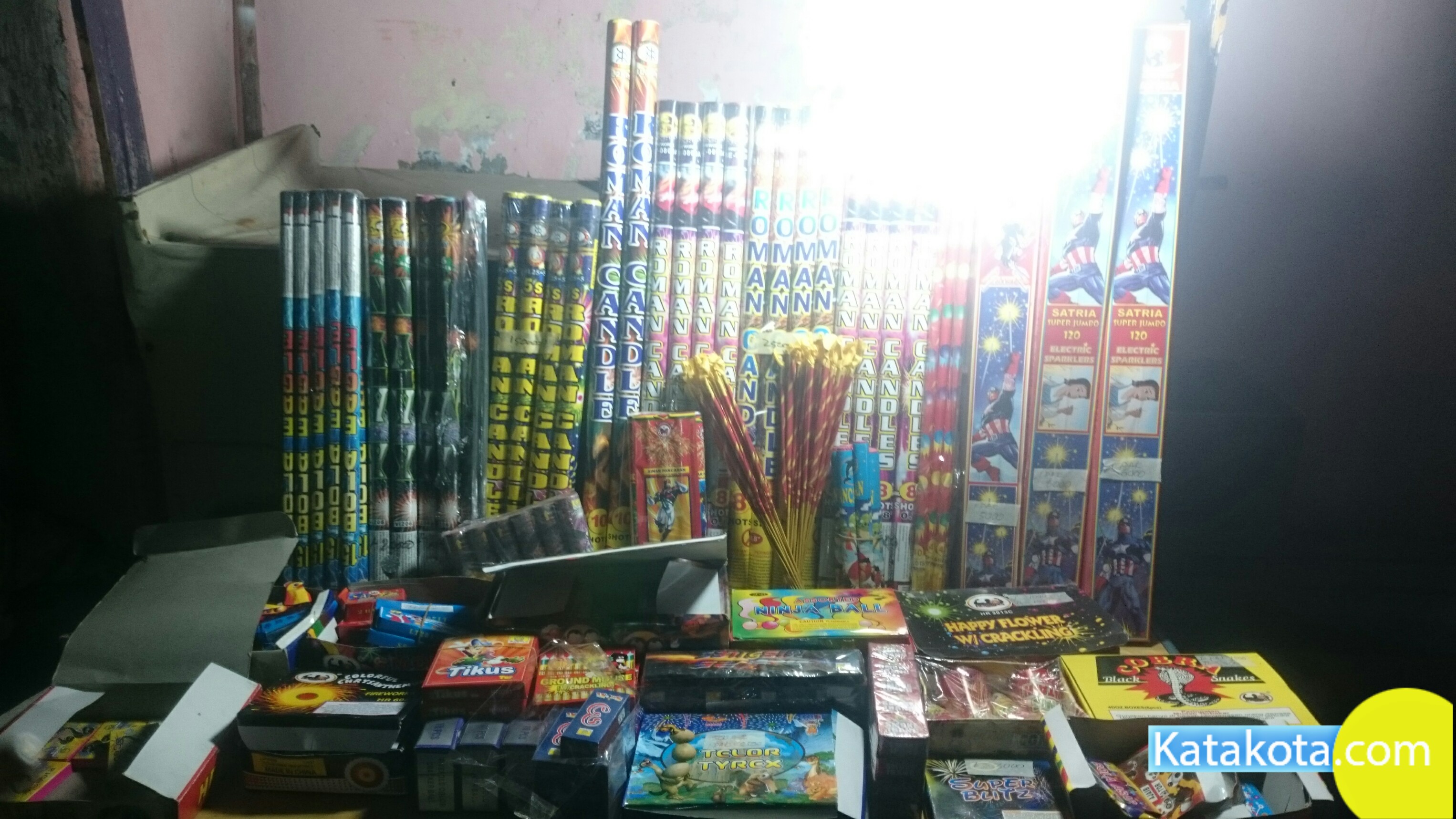Tangerang, Katakota.com -Pedagang kembang api laris manis, banyak warga yang membeli jelang perayaan Idul Fitri 1439H, Pasar Anyar, Tangerang, Rabu (13/6). Dalam sehari pedagang meraup untung ratusan ribu pada momen ini. (Foto : Cecep/Katakota.com)