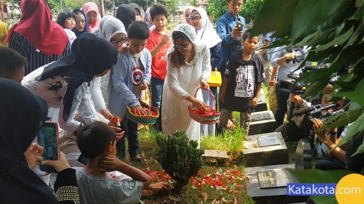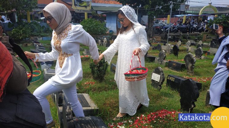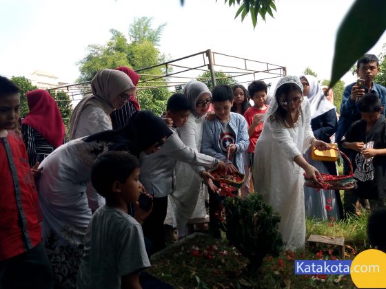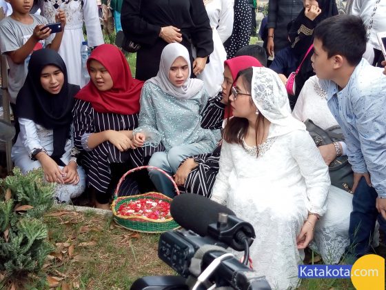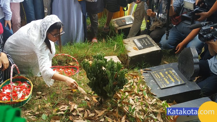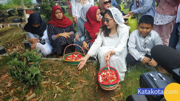 Katakota.com, -Artis Prilly Latuconsina melakukan ziarah kubur di taman pemakaman umum Soleh Ali, Tangerang, Rabu (5/6). Ziarah kubur dilakukan di makam mbah nya sebagai bentuk penghormatan kepada orangtua. Foto: Eky Fajrin/katakota.com.