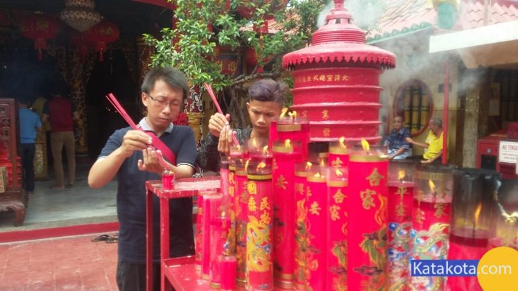 Katakota.com, -Tahun baru imlek 2019 klenteng Boen Tek Bio di kawasan pasar lama ramai dikunjungi baik dari dalam kota maupun luar Kota Tangerang,(adit/katakota.com).