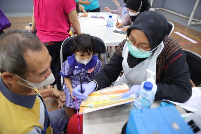 Katakota.com- Bulan Imunisasi Anak Nasional (BIAN) sudah bergulir sejak tanggal 1 Agustus 2022. Dinas Kesehatan (Dinkes) pun terus melakukan percepatan capaian melalui 37 Puskesmas yang ada di Kota Tangerang. Mulai dari dibukanya posko puskesmas, posyandu, door to door, pusat keramaian hingga Gebyar BIAN yang kali ini digelar oleh Puskesmas Sukasari di Gor Dimyati, pada Senin (22/8/22).