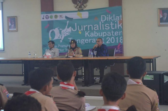 Hal itu diungkapkan Ketua PWI Kabupaten Tangerang, Sangki Wahyudin saat menjadi narasumber Pelatihan Jurnalistik Pramuka Kwartir Cabang (Kwarcab) Kabupaten Tangerang di bumi perkemahan Kitri Bakti, Kecamatan Curug, Selasa (7/8/2018).