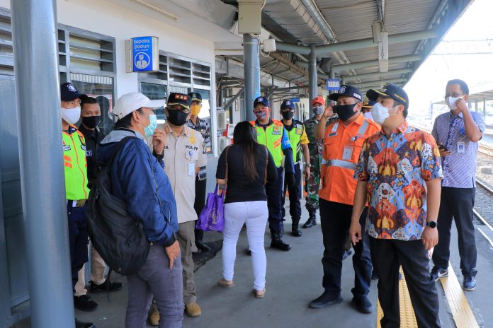 Wali Kota Tangerang H. Arif R. Wismansyah bersama dengan Kadishub Kota Tangerang Wahyudi Iskandar dan Kasatpol PP Kota Tangerang Agus Hendra meninjau Stasiun Tangerang yang menjadi salah satu akses keluar dan masuk Kota Tangerang.