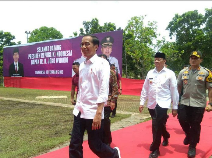 Tangerang, Katakota.com– Presiden Joko Widodo (Jokowi) membagikan 5.000 sertifikat tanah untuk warga Kabupaten Tangerang, Banten. Kegiatan Tersebut dilakukan di Lapangan Maulana Yudhanegara Puspemkab Tangerang. Senin, (18/2/2019).