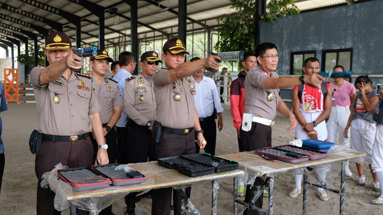 Kakorlantas yang datang dengan bersepda, disambut Kapolres Kota Tangerang Kombes Pol Sabilul Alif, ofisial pertandingan, dan para atlet yang sedang dalam pemusatan latihan.