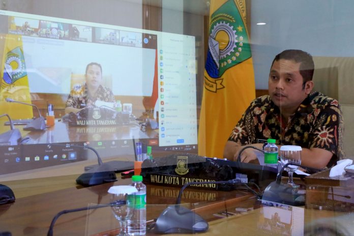 Wali Kota Tangerang H. Arief R. Wismansyah memimpin langsung rapat yang juga diikuti oleh Wakil Wali Kota H. Sachrudin dan Sekretaris Daerah Herman Suwarman secara daring, Kamis (20/1).