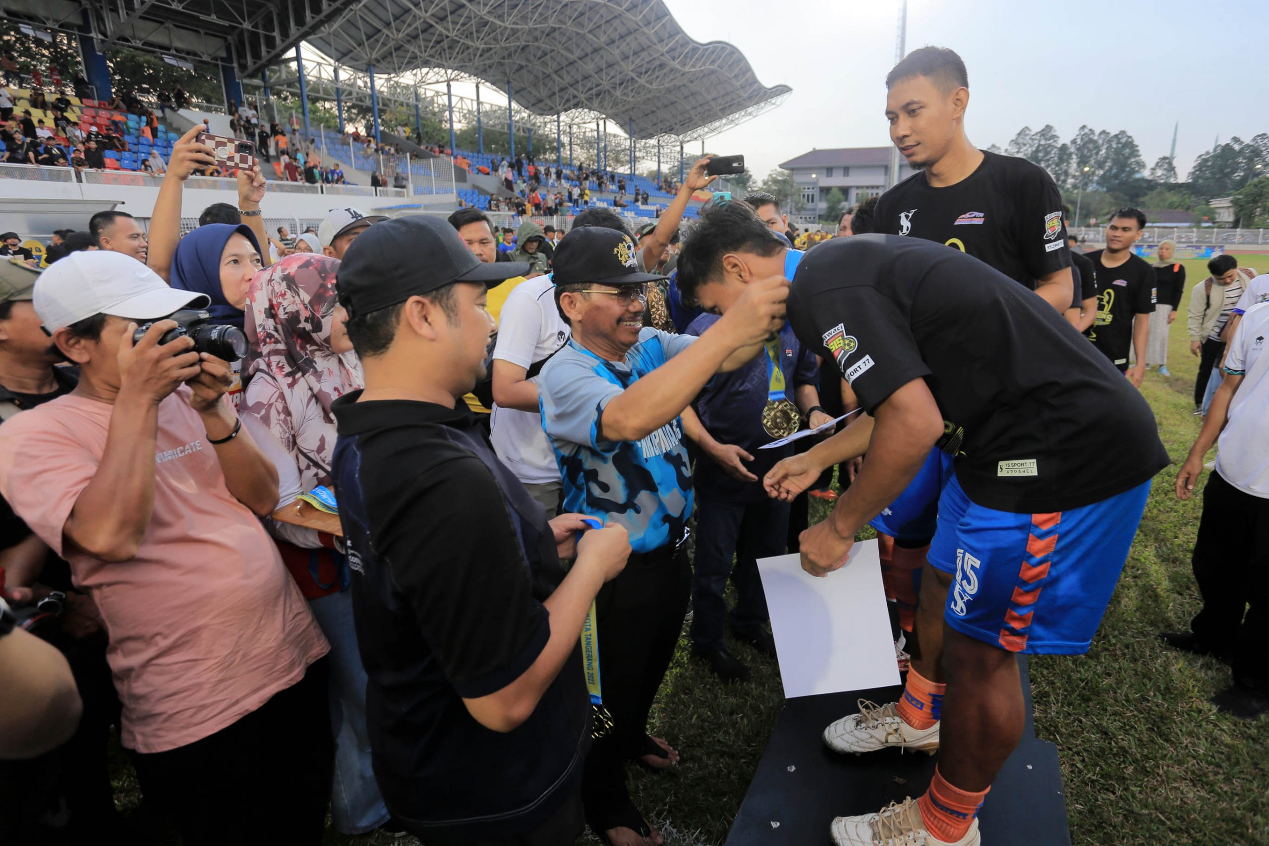 Wali Kota Tangerang H. Arief R. Wismansyah berkesempatan memberikan trofi Liga Tarkam Piala Wali Kota 2023 kepada tim Kelurahan Cimone yang berhasil keluar sebagai juara usai menumbangkan perlawananan tim Kelurahan Gandasari dengan skor akhir 2 – 1.