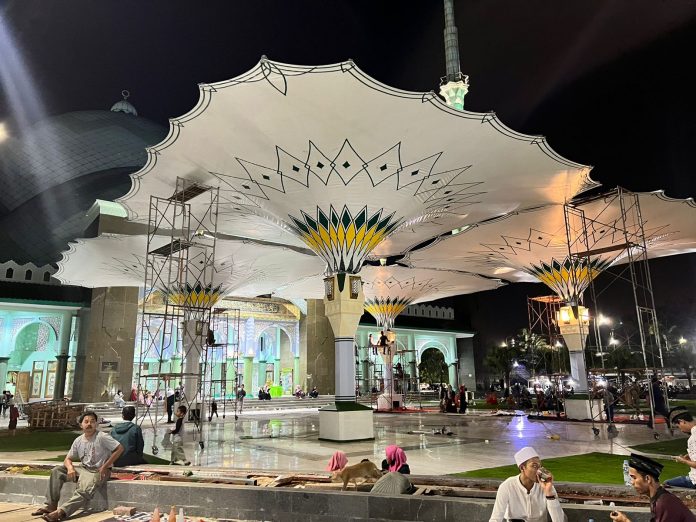 Katakota- Menjadi Kawasan terintegrasi, antara Masjid Raya Al-A’zhom, Taman Elektrik dan Puspem Kota Tangerang. Ya, suasana atau pemandangan itulah yang kini dirasakan saat berkunjung ke Masjid Raya Al’A’zhom kebanggaan Kota Tangerang. Mendapat sentuhan renovasi, Masjid yang dibangun pada 1997 ini kini tak memiliki pembatas atau pagar, serta terdapat empat payung besar dan megah seperti di Masjid Nabawi, Arab Saudi.