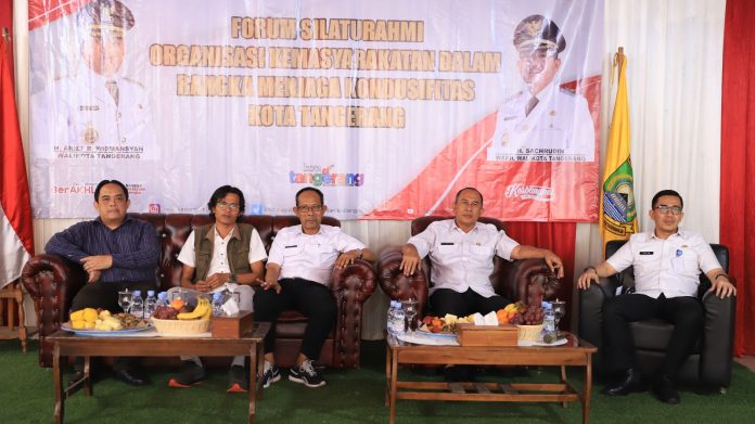 Katakota.com- Pemerintah Kota (Pemkot) Tangerang melalui Badan Kesatuan Bangsa dan Politik (Kesbangpol) menggelar diskusi dan silaturahmi bersama Organisasi Kemasyarakatan (Ormas) di Kota Tangerang. Kegiatan bertujuan menampung aspirasi dan guna menjaga kondusifitas Kota Tangerang.