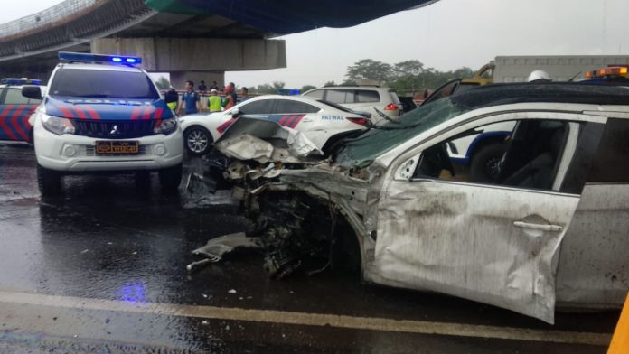 “Setelah itu menabrak pembatas jalan di kilometer 9-500 tol Serpong BSD dan menimpa tiga kendaraan Ertiga, Inova dan Rush” ujarnya.