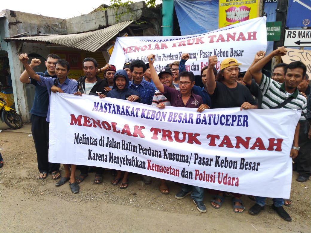 “Kami bersama warga Kebon besar melaksanakan aksi dengan menyetop truk tanah yang melintas tidak sesuai jam operasional yang ditentukan oleh Pemkot melalui Perwal no 30 tahun 2012,” ujar San Rody.