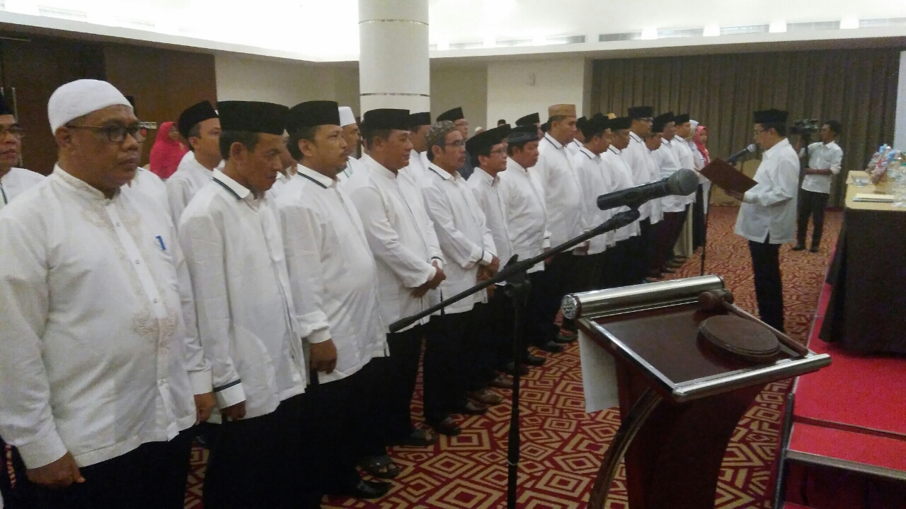 Tangerang,Katakota.com- Sekertaris Daerah Kota Tangerang H. Dadi Budaeri mengukuhkan Pengurus Lembaga Pengembangan Tilawatil Qur’an (LPTQ) periode 2017-2022. Pengukuhan tersebut dilaksanakan disela rapat kerja LPTQ Kota Tangerang yang dilaksanakan di Hotel Grand Zuri BSD City, Kota Tangerang Selatan, Jumat (15/09).