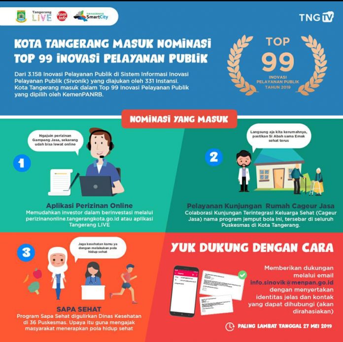 Tangerang, Katakota.com — Masyarakat Kota Tangerang diajak oleh Pemerintah Kota (Pemkot) Tangerang untuk ikut berpartisipasi memberikan dukungan dalam penghargaan inovasi pelayanan publik di sistem informasi inovasi pelayanan publik (sinovik) yang diajukan 331 instansi.