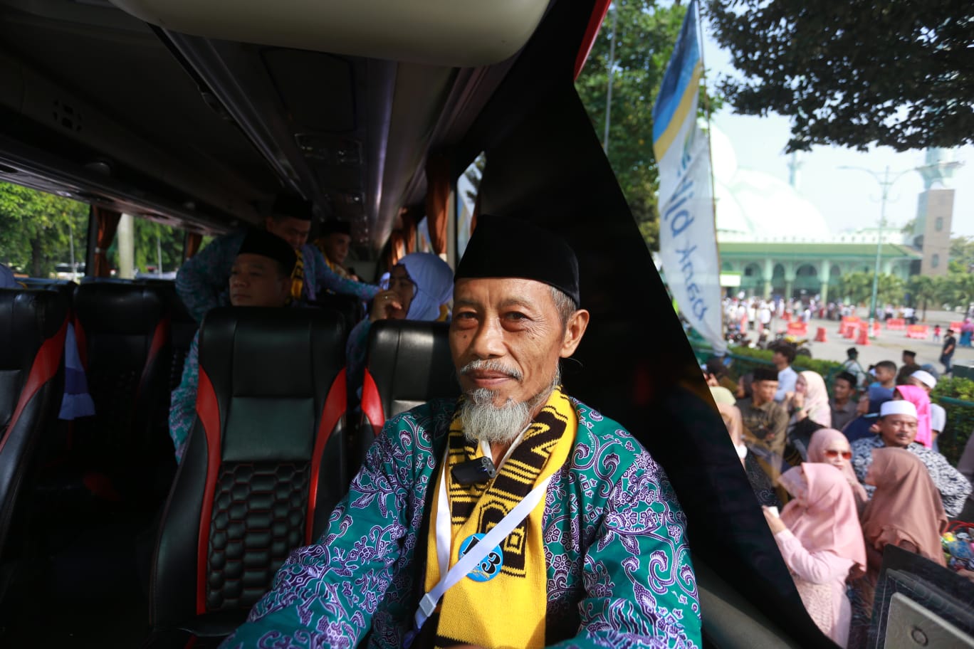 “Alhamdulillah, busnya nyaman, terima kasih udah fasilitasin busnya,,” terang Sutrisno yang ditemui sebelum pemberangkatan jemaah haji di Masjid Raya Al Azhom, Kota Tangerang, Selasa (23/5).
