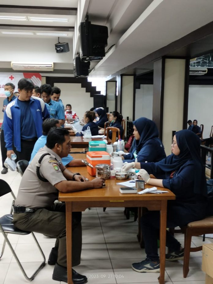 Katakota- PT Gajah Tunggal Tbk bekerjasama dengan Palang Merah Indonesia (PMI) Kota Tangerang menggelar donor di Komplek Industri Jatiuwung, Desa Pasir Jaya, Kecamatan Jatiuwung, Kota Tangerang, Rabu (27/9/2023).