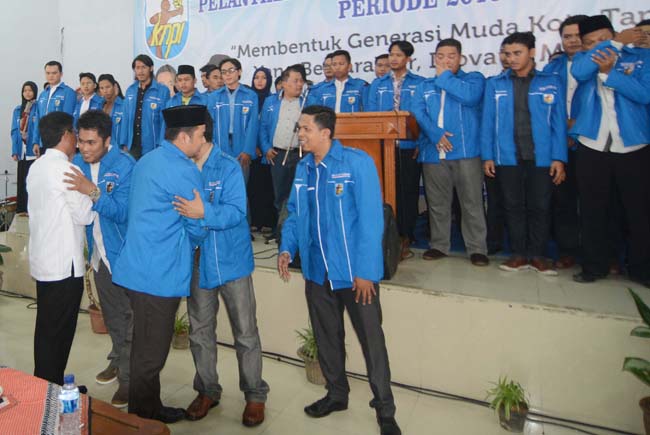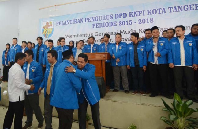 Walikota Tangerang Arief R Wismansyah dan Wakil Walikota Tangerang Sachrudin memberikan ucapan selamat kepada pengurus DPD KNPI KNPI Kota Tangerang, Jumat (29/1). Rusdi Alamsyah akhirnya terpilih menjadi ketua DPD KNPI KOTA TANGERANG periode 2015-2018. KataKota/Gendon Pamungkas