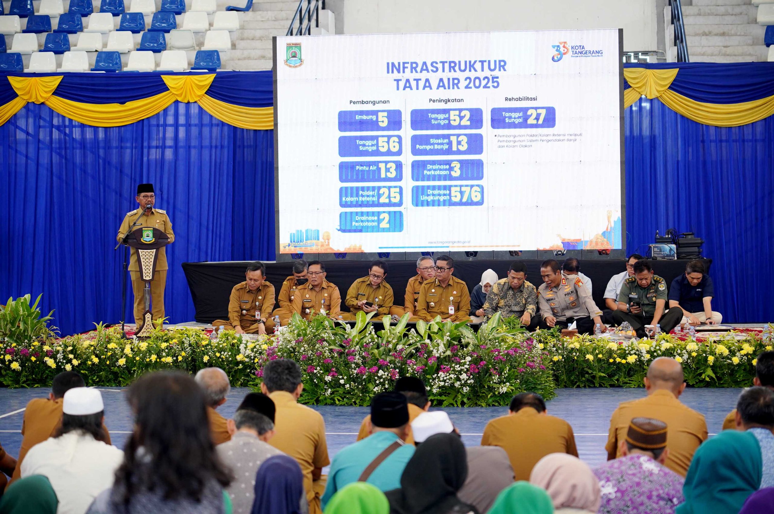 Menurutnya, sepanjang 2025 Pemkot Tangerang telah melakukan berbagai pembangunan di sektor tata air guna mengurangi risiko banjir dan meningkatkan pengelolaan lingkungan. Di antaranya pembangunan lima embung, 56 tanggul, 13 pintu air, 25 polder atau kolam retensi, serta dua sistem drainase perkotaan baru.