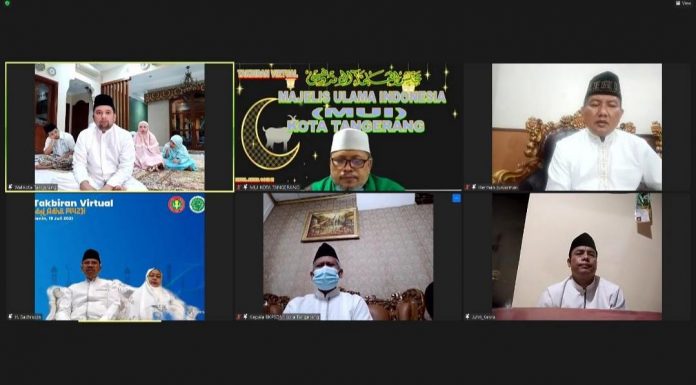 Pemerintah Kota Tangerang menggelar kegiatan Takbiran Virtual dalam rangka memperingati momen Iduladha 1442 Hijriyah/2021 Masehi yang disiarkan melalui kanal jejaring sosial Youtube Kota Tangerang dan melalui aplikasi Zoom.