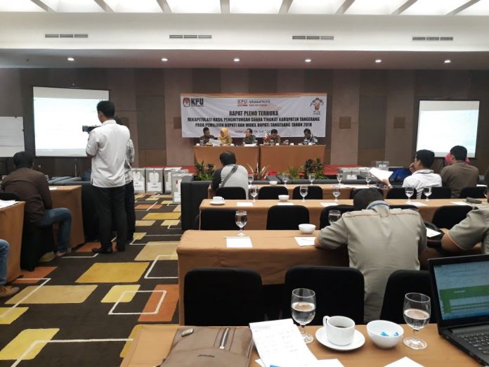 Tangerang, Katakota.com – KPU Kabupaten Tangerang menggelar rapar pleno terbuka pada Rabu (4/7/2018) di Hotel Lemo Kelapa Dua Kabupaten Tangerang, Rapat yang dihadiri anggota KPU, Panwaslu, PPK ini berjalan lancar.