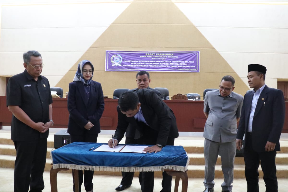 Tangsel, Katakota.com– DPRD Kota Tangsel mengesahkan Raperda Laporan Pertanggung jawaban pelaksanaan APBD tahun 2018 menjadi Peraturan Daerah (Perda) pada Senin (8/7).