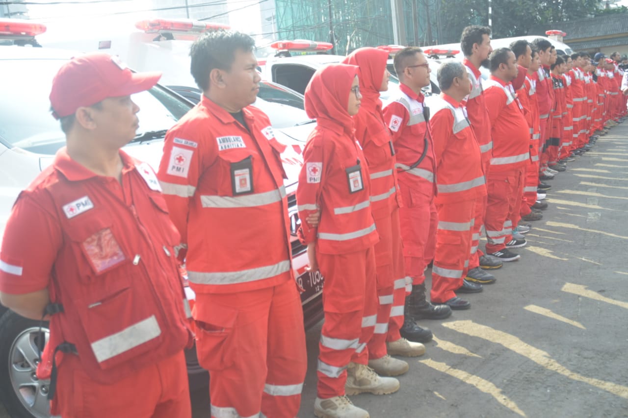 Apel ditandai dengan pengecekan kelengkapan ambulans dan pelepasan 60 petugas Pertolongan Pertama (PP) beserta 15 unit ambulans.