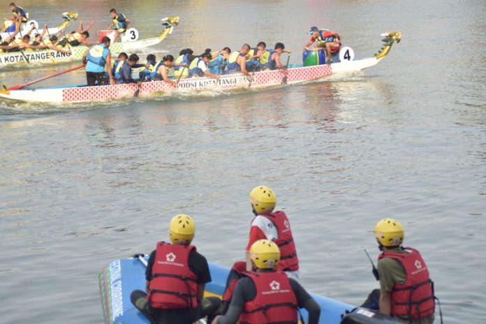 Tangerang, Katakota com — Palang Merah Indonesia (PMI) Kota Tangerang menerjunkan tim keselamatan untuk mengawal perlombaan _dragon boat_ (perahu naga) dalam perhelatan Festival Cisadane.