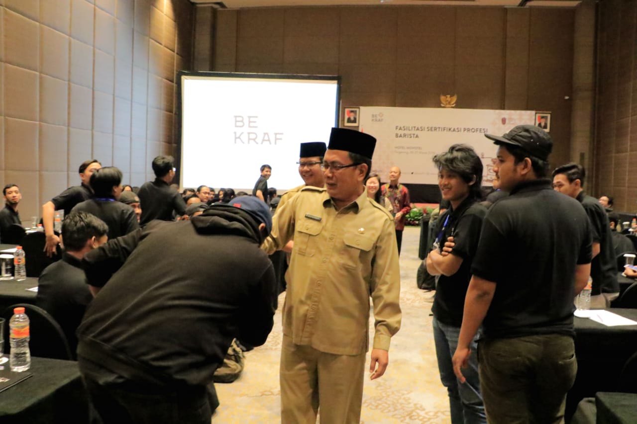Tangerang, Katakota.com– Sekretaris Daerah Kota Tangerang Dadi Budaeri hadiri acara sertifikasi profesi barista yang difasilitasi oleh Badan Ekonomi Kreatif (BEKRAF) pada Senin (26/3) di ballroom hotel Novotel, Kota Tangerang.