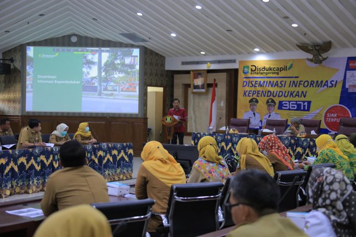Katakota.com- Dinas Kependudukan dan Pencatatan Sipil (Disdukcapil) Kota Tangerang kembali menggelar kegiatan Diseminasi Informasi Kependudukan Tahun 2022 yang berlangsung secara daring dan luring di Ruang Akhlakul Karimah, Pusat Pemerintahan Kota Tangerang, Selasa (20/12/22).