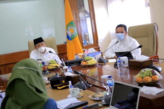 Wali Kota Tangerang H. Arief R. Wismansyah menghadiri acara Rapat Koordinasi terkait Penanganan Covid-19 dan Perkembangan Pelaksanaan PPKM di Kota Tangerang di Ruang Rapat Wali Kota Tangerang, Jum’at (5/3/21).