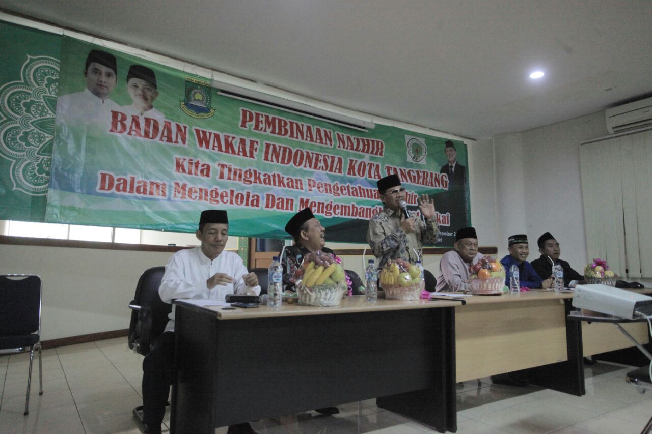 Wakil Wali Kota Tangerang H. Sachrudin dalam sambutannya pada pembukaan kegiatan tersebut menyampaikan pembinaan ini dilakukan untuk membuka wawasan nazhir di kota Tangerang untuk dapat berinovasi dalam mengelola dan mengembangkan aset – aset wakaf yang ada di kota Tangerang.