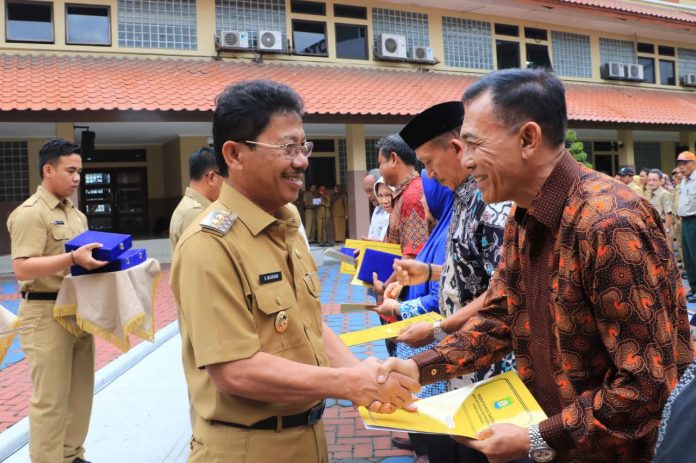 Selepas pelaksanaan apel pagi, Sachrudin juga menyempatkan diri untuk menerima 7 pegawai yang telah memasuki masa purna bakti di ruang kerjanya, sekaligus memberikan SK Pensiun, Tunjangan Hari Tua dan Dana Korpri.