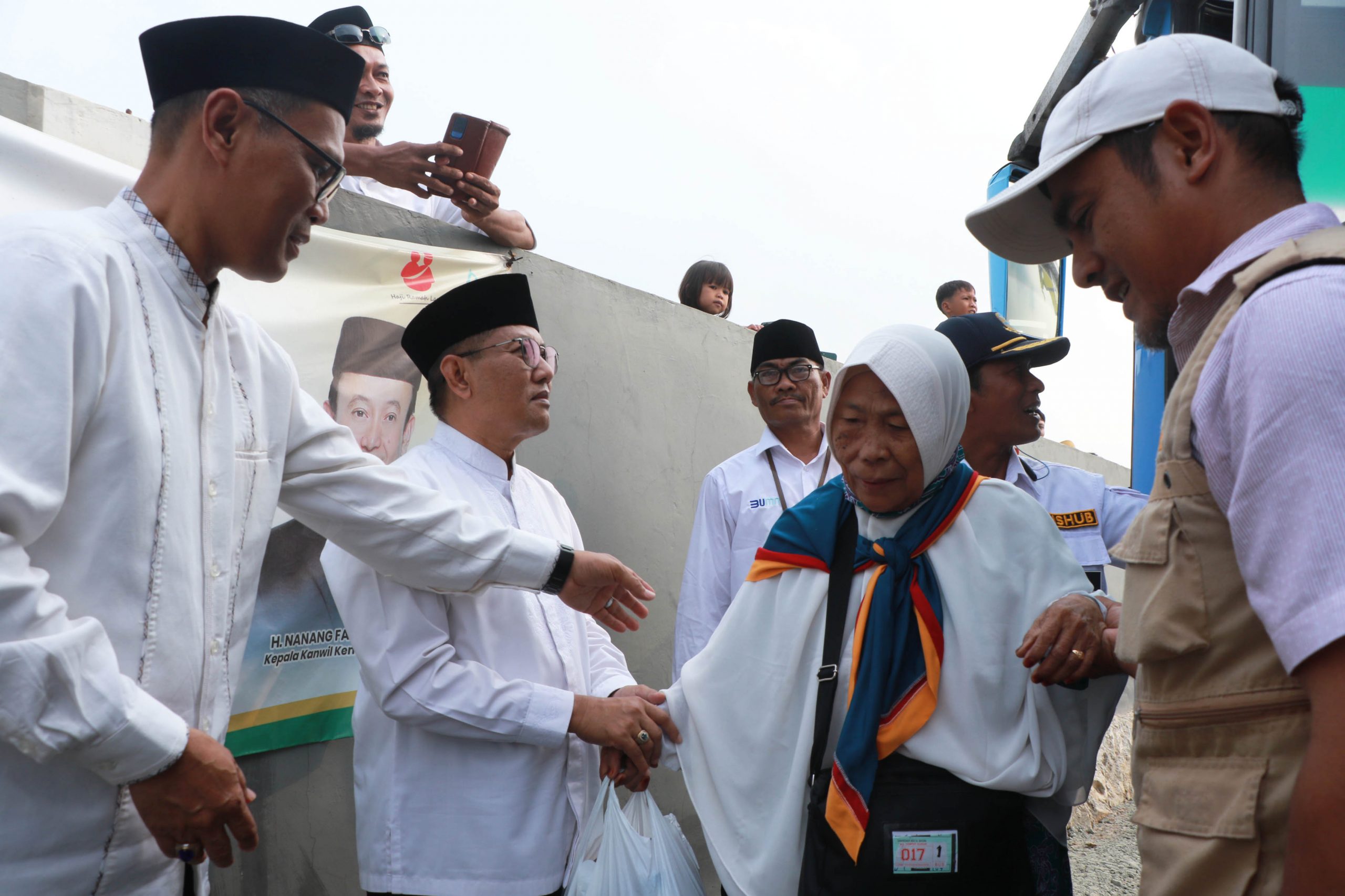 Katakota.com- Sekretaris Daerah (Sekda) Kota Tangerang, Herman Suwarman, menyambut kedatangan para jemaah haji yang tiba di Hotel Grand El Hajj Asrama Haji Cipondoh, Kota Tangerang, Minggu (17/07).