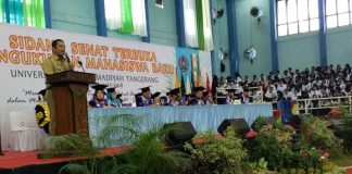 Tangerang, Katakota.com- Walikota Tangerang Arief R.Wismansyah memberikan kuliah umum terkait kewirausahaan kepada ribuan mahasiswa baru Universitas Muhammadiyah Tangerang (UMT), di GOR Damyati, Selasa (5/9/2017).