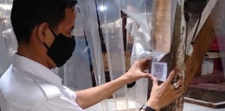 PD Pasar Kota Tangerang mengembangkan elektronifikasi pembayaran dengan melakukan pemasangan QR Code di kios pedagang.