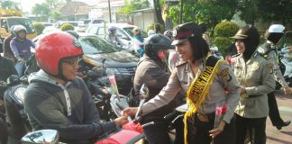 Peringati HUT Ke 69, Polwan Cantik Bagikan Bunga Ke Pengendara