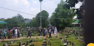 Katakota.com, -Sejumlah warga berziarah ke makam keluarganya di pemakaman umum Soleh Ali, Tangerang, Rabu (5/6). Momen lebaran dimanfaatkan warga untuk berziarah. Foto : Fajrin/Katakota.com.