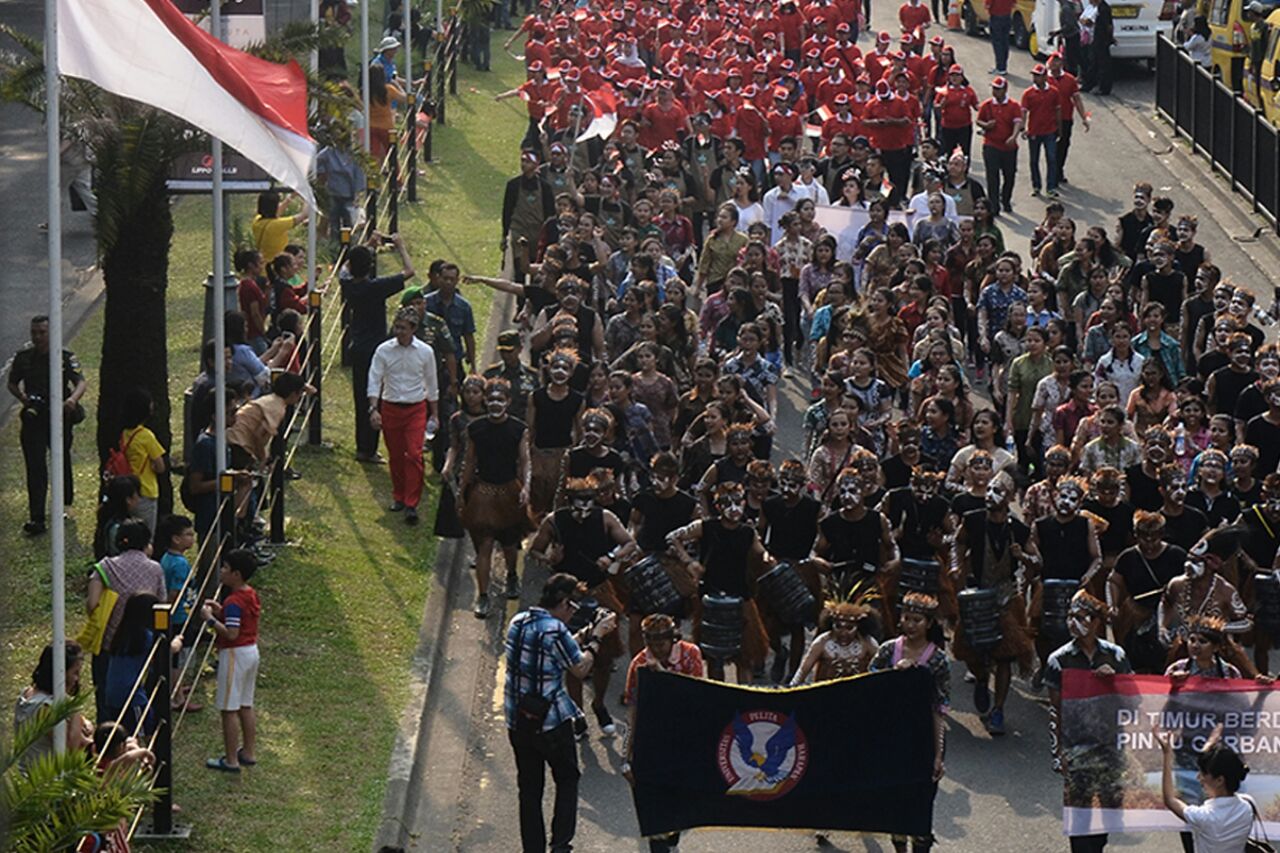 Sebanyak 2800-an peserta berpartisipasi dengan mengenakan pakaian adat suku-suku yang ada di Indonesia. Mulai dari IKG dengan baju daerah Bali, Sekolah Dian Harapan dengan baju daerah Jawa Timur beserta arak-arak an Gathut Kaca, sampai Universitas Pelita Harapan dengan baju adat dari Papua.