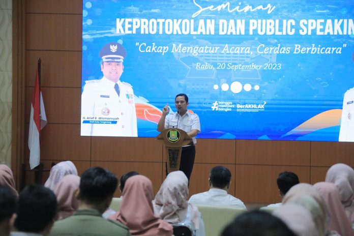 Hal tersebut disampaikan oleh Wali Kota Tangerang, Arief R. Wismansyah, saat membuka kegiatan Seminar Keprotokolan dan Public Speaking yang mengangkat tema “Cakap Mengatur Acara, Cerdas Berbicara”, Rabu, (20/09) di Ruang Al-Amanah Pusat Pemerintahan Kota Tangerang.