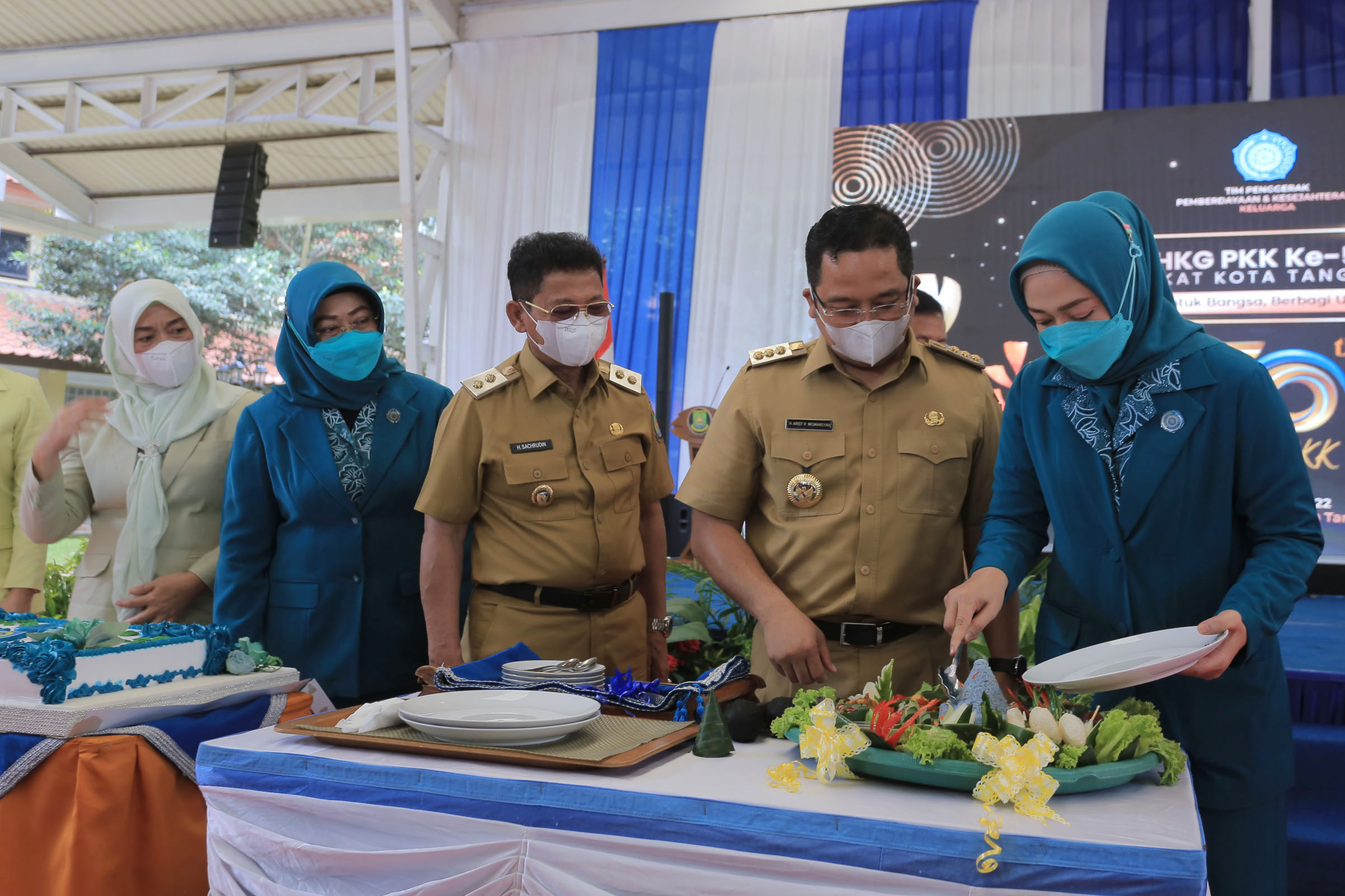 Katakota- Wali Kota Tangerang H. Arief R. Wismansyah memperkenalkan kuliner baru Kota Tangerang dalam acara peringatan puncak Hari Kesatuan Gerak (HKG) Pemberdayaan dan Kesejahteraan Keluarga (PKK) Tingkat Kota Tangerang yang mengusung tema “Berbakti Untuk Bangsa, Berbagi Untuk Sesama” di selasar Gedung Pusat Pemerintahan Kota Tangerang, Senin (6/6/22).
