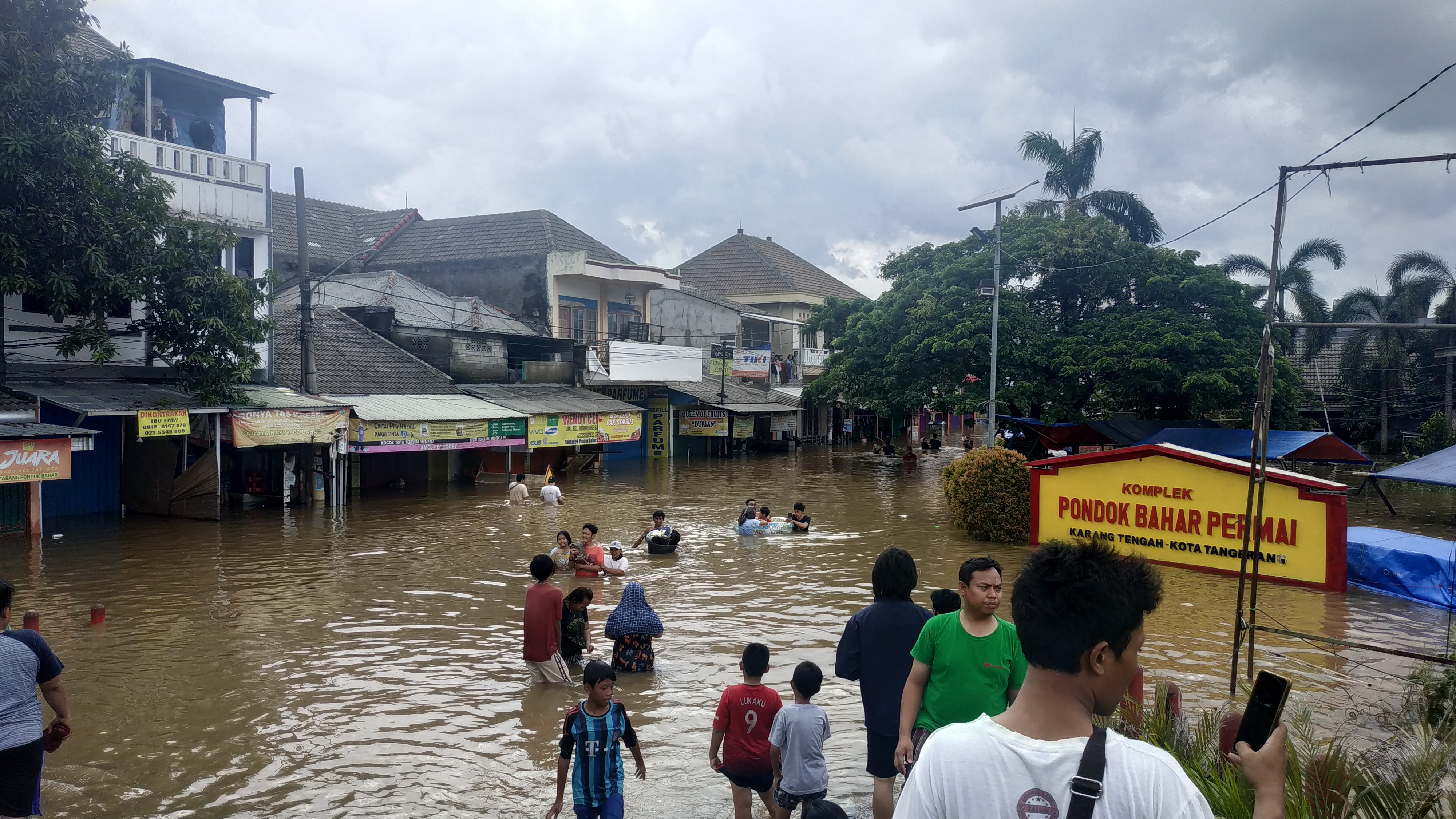 Tangerang, Katakota.com — Banjir melanda sejumlah wilayah di Kota Tangerang, salah satunya di perumahan Pondok Bahar Permai, Karang Tengah, Kota Tangerang sejak Rabu (1/1) pagi. Warga hingga hari kedua banjir masih belum mendapatkan bantuan dan evakuasi dari instansi terkait.