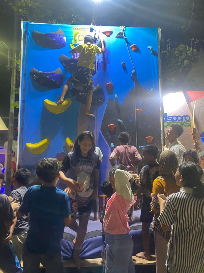 “Wisata olahraga mini di Festival Cisadane Kota Tangerang 2023 ini, Dispora menyajikan mini wall clambing, permainan tradisional, egrang, bakiak dan panahan. Paling banyak diburu ialah mini wall clambing yang tak pernah sepi dari buruan warga yang ingin mencobanya,” ungkap Kaonang, Rabu (22/11/23).
